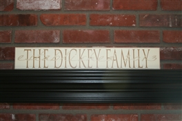 Krista's Creations name blocks are a nice way to display your family name inside your home. The block is 22 inches in length and 3.5 inches high. The name blocks come in 3 conservative colors and a variety of writing colors and fonts. If choosing one of these products, please write in the family name and established date in the customer comments section, along with any two color of fonts.